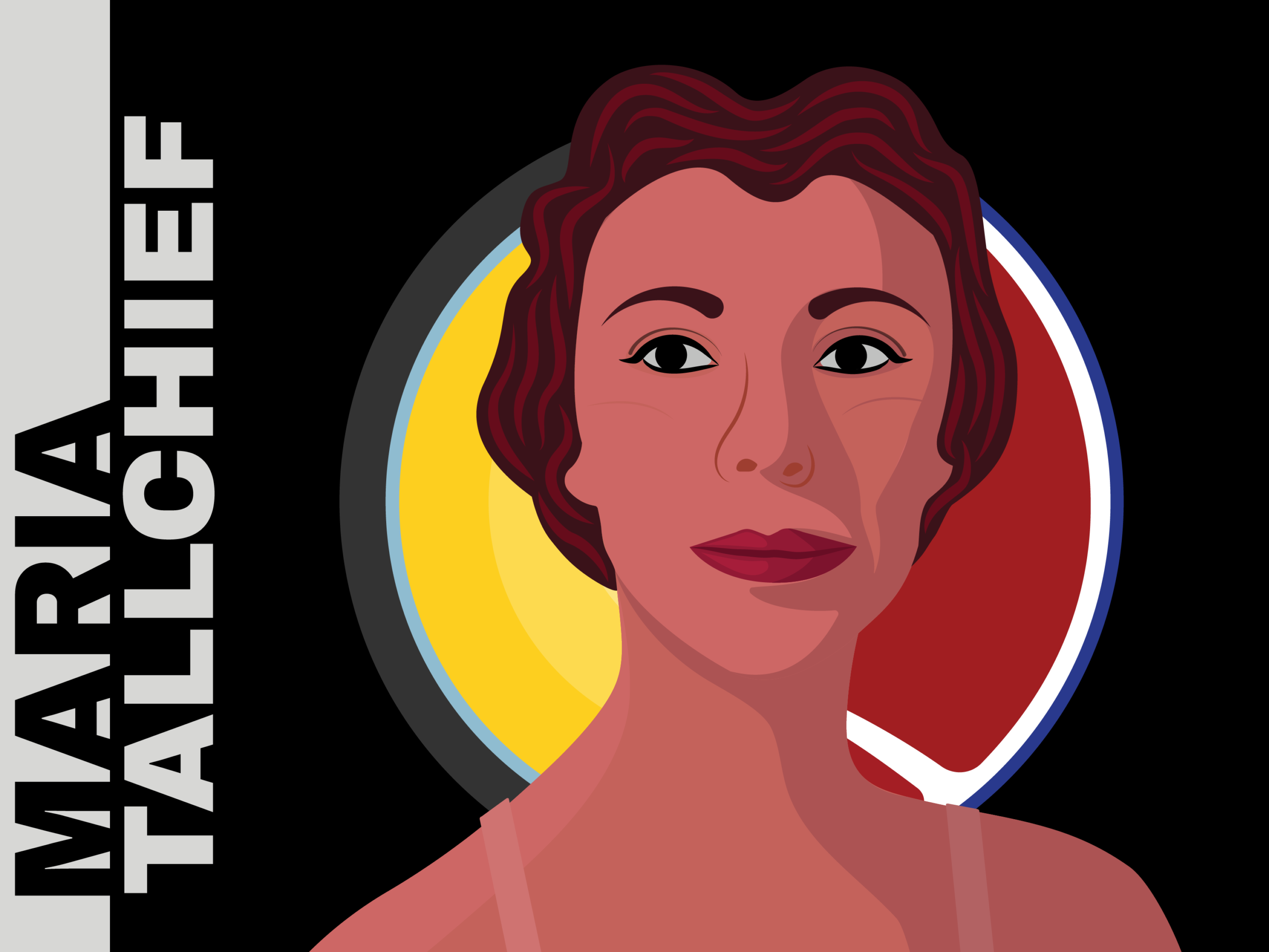 illustrations of maria tallchief displaued as posters illustrations of maria tallchief in a printed zine containing content about maria tallchief illustrations of maria tallchief displayed as content for social media posts